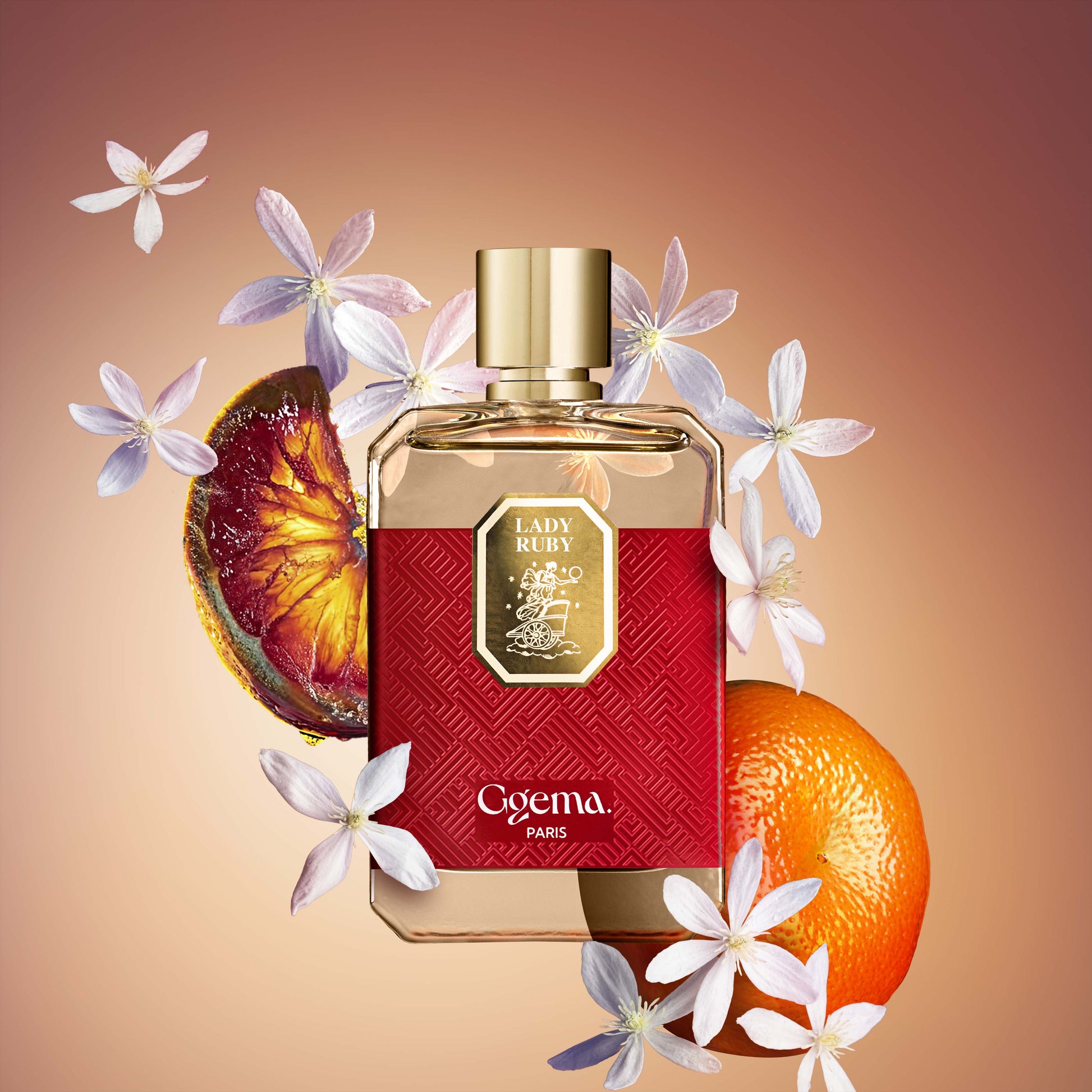 Lady Ruby is a feminine eau de parfum. Its facets majestically reflect the ruby with which it has been infused. An icon of the "Ggema Ruby" Collection, this interpretation of the emblematic color red gives this fragrance a timeless allure.